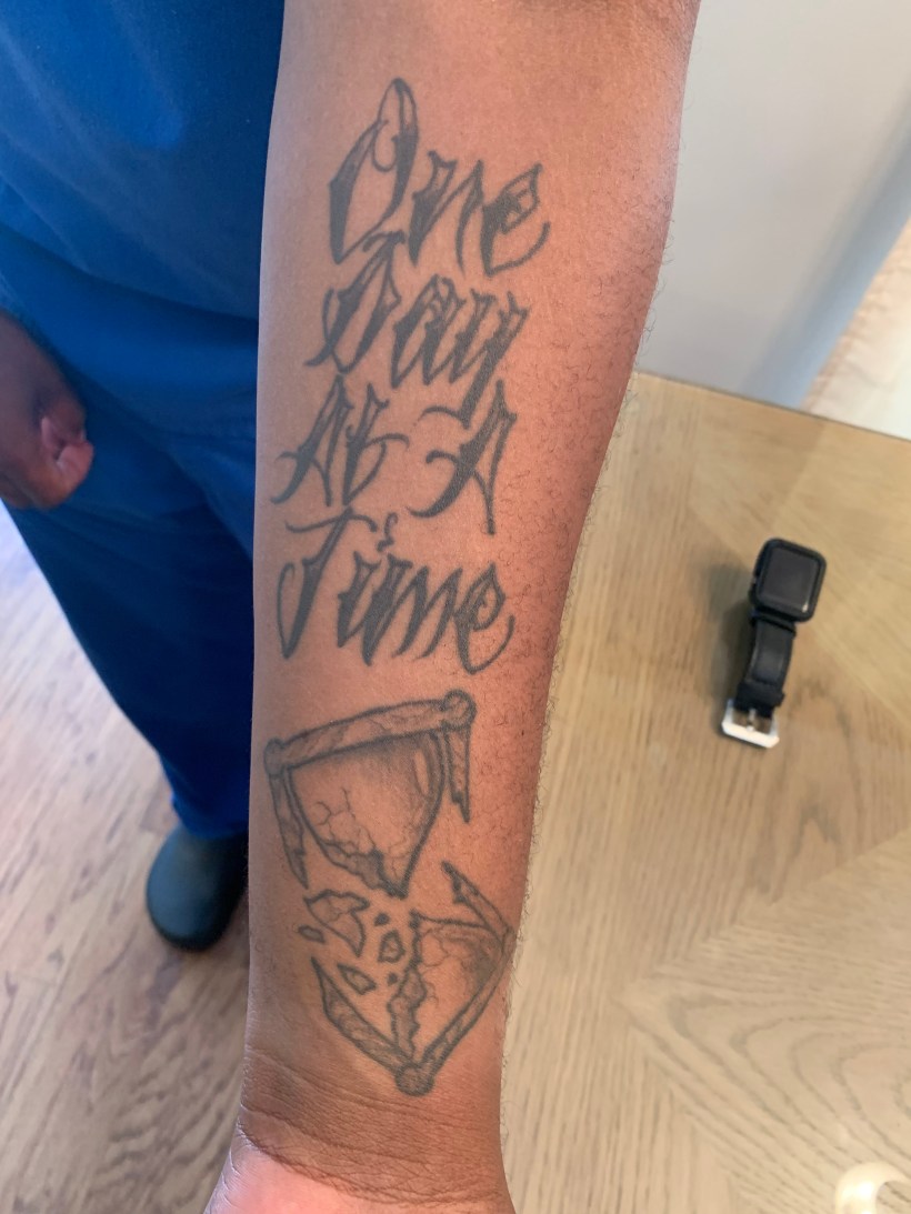 God answered that day in such a precious and tangible way. Ten minutes later at my appointment, I met a young man who has a rare passion and enthusiasm for his work. He is in the home health industry and approaches each client with a true servant’s heart. As we continued to talk, my dad asked out-of-blue about this young man’s tattoo. He shared about a difficult season in his life and how he had learned to take “one day at a time”. Instantly, God reminded me of the truth that dropped so deeply into my heart during the year I was in treatment.